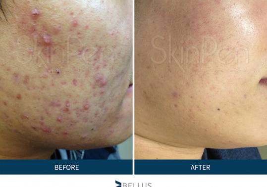 The microneedling process works by creating controlled micro-injuries that stimulate your body’s natural wound healing process, while minimizing cellular damage. The result is effective remodeling of scar tissue, while keeping the overall structure of the skin intact.